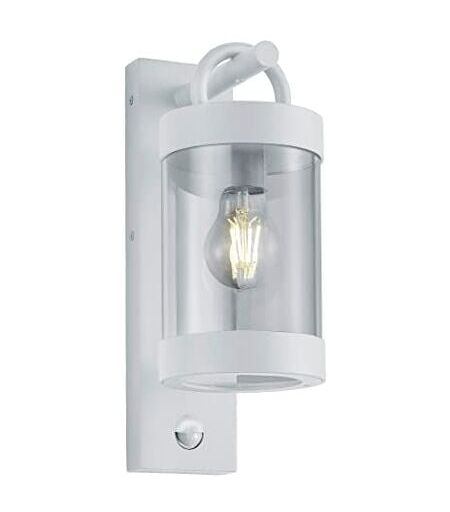 TRIO, Applique, Sambesi 1xE27, max.28,0 W Plastique, Transparent claire, Corps: Fonte daluminium, blanc mat L:12,5cm, H:33,0cm, P:18,0cm Détecteur de mouvement,Montage au mur,IP44 ...