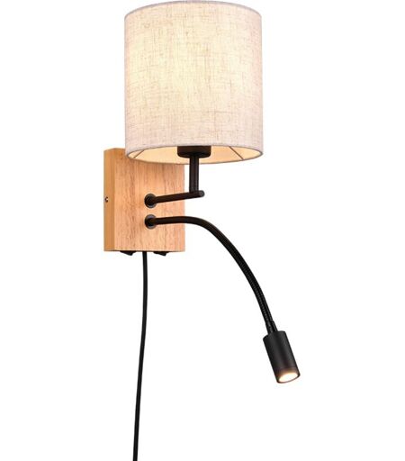 Trio Leuchten Applique murale led 1xe27 max 28w liseuse 31w - bois naturel et tissu blanc - trio - nilam 71802593 71802593 71802593 71802593 71802593