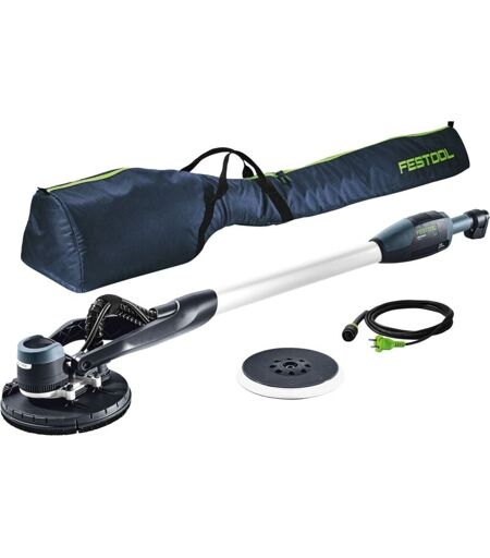 Description générale La ponceuse à bras Festool PLANEX LHS-E 225 EQ 400 W est un outil professionnel léger, sans entretien et simple d'utilisation, parfait pour les travaux de ponçage des plafonds et des murs. Grâce à son moteur sans charbons et sans arbre flexible, elle garantit une durée de vie maximale et un processus de travail fluide. Son poids réduit permet un travail prolongé sans fatigue, rendant la préparation des surfaces rapide et efficace. Spécifications techniques Puissance absorbée : 400 W Régime à vide : 400 - 920 min⁻¹ Ø plateau de ponçage interchangeable : 215 mm Ø abrasif : 225 mm Longueur : 1,6 m Ø raccord d'aspiration : 36/27 mm Poids : 4 kg Compatibilité et accessoires Plateau de ponçage StickFix LHS-E Ø 215 mm Housse de transport LHS-E 225-BAG Fixation velcro KV-215 (pack de 5) Câble Plug-it amovible Installation Installez le plateau de ponçage en le fixant à l'aide du système StickFix. Assurez-vous que le câble d'alimentation est correctement connecté pour une ...