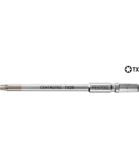 Festool Embout TX 25-100 CE/2- 500849 pour WH-CE CENTROTEC, tournevis SD-CE-DRIVE-UNIRéférence 500849 Livraison standard Contenu: 2,00 Pièce Points forts L'embout ultra-long L'embout ultra-long peut être installé directement dans le mandrin CENTROTEC et verrouillé. La longueur de 100 mm facilite par exemple le vissage de ferrures et d'assemblages dans des trous ou des zones étroites.L'extrémité de l'embout est nickelée chimique pour prolonger la durée de vieRevêtement chromé pour une meilleure protection contre la corrosionAvec interface CENTROTECle dépassement du mandrin (WH-CE) s'élève à 69 mm Utilisation Principales utilisationsMontage de meubles et mobilier de cuisineMontage de ferruresVissage dans des évidements ou des trous percés Caractéristiques Taille:TX 25Longueur:100 mm ...