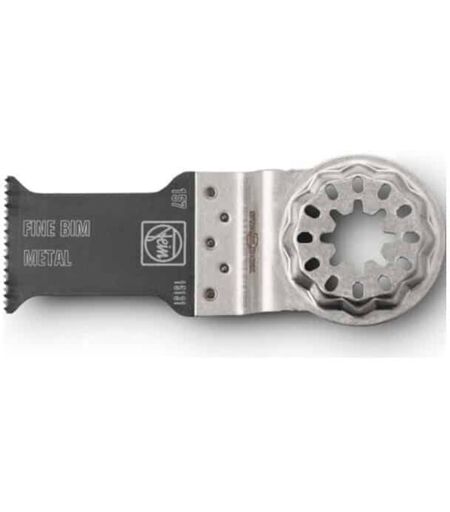 Bi-métal avec denture fine pour tôles jusqu’à 2 mm, profilés aluminium, tubes de cuivre. Également pour résines composites et autres plastiques durs. Coupe extrêmement précise et très facile à contrôler avec une ligne de coupe particulièrement fine. Largeur moyenne, forme taillée pour une vitesse de coupe optimale et une bonne évacuation des copeaux. STARLOCK > Nouveau standard des outils oscillants: Une optimisation qui va plus loin que de simples détails, Stalock est le nouveau porte outil FEIN Grâce au nouvel porte-outil étoile 8 branches éprouvé et à un porte-outil 12 broches Les accessoires FEIN avec multi-empreinte sont également compatibles avec de nombreuses machines oscillantes d’autres fabricants, sans adaptateur, et augmentent considérablement leur puissance. Compatibilités lame STARLOCK : Outils: - BOSCH bleu GOP250CE - GOP300SCE et GOP10.8V-LI - BOSCH vert - FEIN MultiMaster, MultiTalent, SuperCut (avec adaptateur) - Autres marques : Dewalt - Makita - Metabo - Hitachi ...