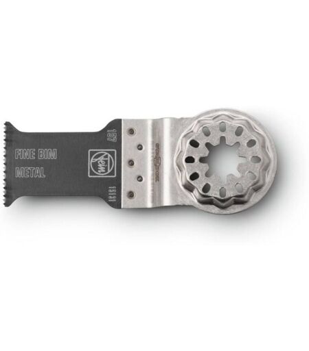 Informations techniques Adapté pour modèle (outil multifonction) : MultiMaster Convient aux marques (outil multifonction) : Fein, Makita, Bosch, Milwaukee, Metabo Largeur de la lame de la scie : 30 mm Logement d'outil : SL Longueur lame de scie : 50 mm Matériau : Bi-métallique compatibilité du matériau : Tôle, aluminium, cuivre, plastique Lame de scie E-Cut Fine 30 mm x 50 mm, 5 pcs Bimétallique avec denture fine pour la tôle jusqu'à 2 mm, les profilés en alu, les tubes en cuivre. Convient également pour le plastique renforcé de fibres de verre et d'autres plastiques durs. Coupes extrêmement précises et très grand contrôle grâce à la ligne de coupe particulièrement fine. Emmanchement Starlock universel, également adapté pour tous les outils multifonctions courants sur le marché. Largeur moyenne, forme taillée pour une vitesse de coupe optimale et une bonne évacuation des copeaux. Configuration requise null ...