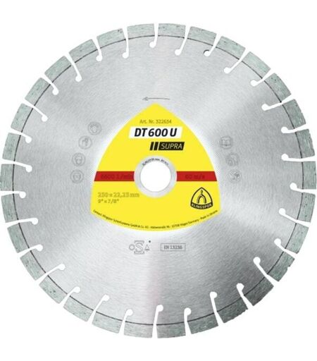 Disque à tronçonner diamanté Klingspor DT 600 U Supra; 300x2 8x25 4 mm Code EAN : 4014855217755 Marque : Klingspor Poids du produit (kg) : 1.3 ...