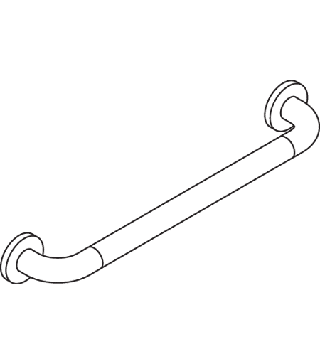 Hewi 801 poignée de bain 801.36.12084 Tige pliée à angle droit aux extrémités Montage au mur avec du matériel de montage HEWI 90 mm de profondeur Tige ø 33 mm Rosetten ø 70 mm en polyamide avec continu Noyau en acier protégé contre la corrosion et rosaces de fixation en acier ...