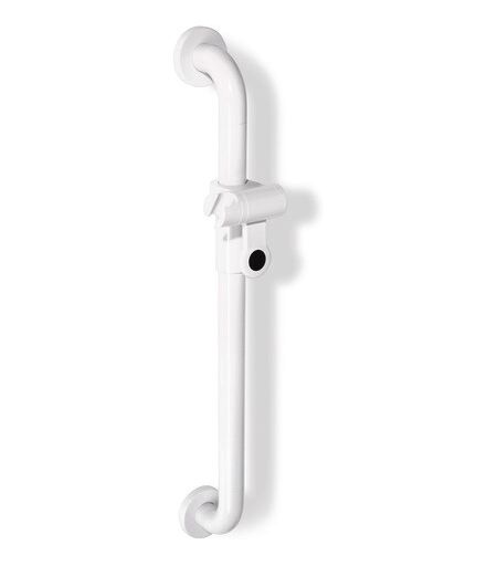 Hewi 477 barre de support de douche 477.33.12084 Système de barre avec support de douche et rosaces de montage avec insert en acier protégé contre la corrosion adapté pour Douchettes Fabricants différent Support de douche réglable en continu 90 mm de profondeur Ø 33 mm Rosetten Ø 70 mm en polyamide ...