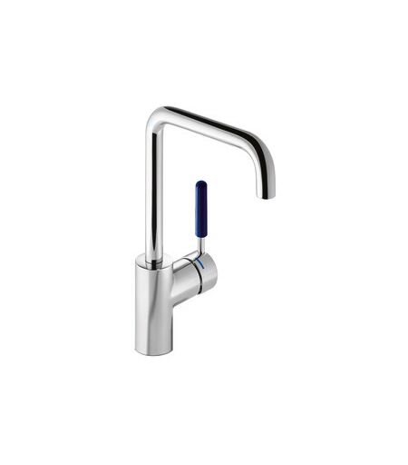 Hewi AQ mitigeur lavabo Poignée bleu acier, tube rond, saillie 187mm, chromée