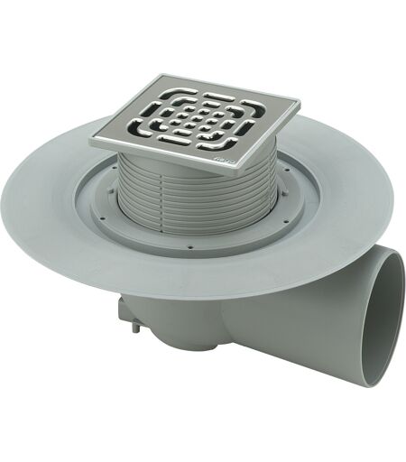 Viega Advantix siphon de sol 557164 avec bride d'étanchéité avec piège à odeurs amovible avec fixation rotative/réglable en hauteur 150 x 150 mm avec bouchon de protection avec cadre en plastique et grille en acier inoxydable 1.4301 Capacité de drainage DN 70-1 1 l/s Capacité de drainage DN 100-1 7 l/s Classe de charge K=300 kg qualité contrôlée selon DIN EN 1253 ...