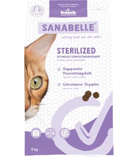 Sanabelle Sterilized est un aliment sec équilibré qui a été adapté aux besoins nutritionnels spécifiques des chats stérilisés et castrés. Les chats stérilisés ont souvent tendance à être en surpoids, car leur métabolisme ralentit après la... ...