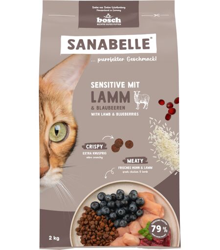 2kg Sensitive agneau myrtilles Sanabelle croquettes pour chat