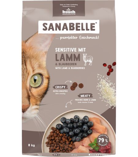 8kg Sensitive agneau myrtilles Sanabelle croquettes pour chat