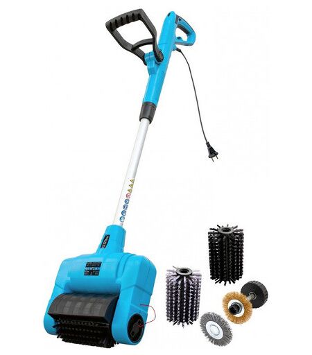 Brosse rotative pour terrasse La brosse universelle : votre nouvelle aide indispensable dans la maison et le jardin. En quelques étapes seulement, la brosse de surface, idéale pour nettoyer les surfaces en pierre et en bois, peut etre transformée en brosse a joints. Caractéristiques techniques : Alimentation : 230 V / 50 Hz Protection : IP X0 – Classe II Puissance moteur : 500 W Vitesse moteur : 750 – 1300 t/min O brosse : 100 mm Largeur brosse : 160 mm Hauteur de poignée min / max : 980 / 1280 mm Longueur du câble : 350 mm Dimensions : 400 x 270 x 1300 mm Domaines d'application : Pour nettoyer et enlever la saleté sur diverses surfaces telles que les trottoirs, les dalles de terrasse ou les bordures de pelouse. Equipement : 1 x brosse universelle 1 x brosse large dure en nylon 1 x brosse large souple en nylon 1 x brosse a joints en métal 1 x brosse a joints en nylon Changement de brosse sans outil pour tous les accessoires Perche télescopique réglable en hauteur de 980 a 1280 mm Protection contre les éclaboussures Interrupteur de sécurité Poignée supplémentaire réglable 180° Poignée souple, adaptée aux gauchers et droitiers Régulation de la vitesse en continu Accessoires : G94426 - Brosse nylon de rechange G94427 - Brosse métal de rechange> ...