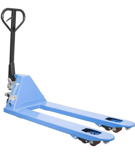 Le transpalette Güde GHW 2500 PU est un assistant fiable pour les travaux de transport dans votre entrepôt ou atelier. Sa construction en acier résistante à la torsion et son timon orientable à 180° permettent un faible rayon de braquage. Sa capacité de charge est de 2 500 kg. La levée se fait par le timon avec commande de soupape. La descente peut être activée via la poignée ou une pédale intégrée. Les roues en polyuréthane assurent un roulement silencieux sur les sols durs. ...