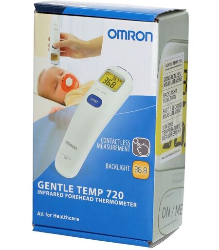 Contenu de la livraison: Thermomètre Gentle Temp 720, 1x pile CR2032, capuchon de sonde, mode d’emploi. Infromations du Produit: Ce thermomètre sans contact d’OMRON est un thermomètre à infrarouge ultra rapide et précis dont certaines caractéristiques permettent de toujours garder sous contrôle la température de votre enfant, avec le moins d’agitation possible. Mesure la température corporelle au front sans contact Mesure la température de surface, d’une bouteille de lait ou d’un distributeur alimentaire par exemple, Avec sa mémoire pouvant stocker 25 mesures, il est possible de suivre les variations de température sur une période donnée et de surveiller les tendances. Grâce à l’écran rétroéclairé, les mesures sont clairement lisibles la nuit, ce qui rend cet appareil particulièrement pratique pour mesurer la température de votre enfant la nuit. Données techniques: Longueur (cm): 12,00 Hauteur (cm): 7,00 Profondeur (cm): 20,00 Poids du colis (g): 363,00 ...