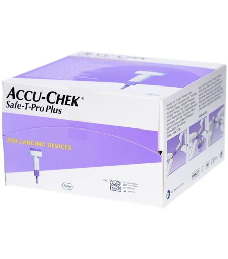 Accu-Chek Safe T Pro PlusAutopiqueur à usage unique1 seule référence3 profondeurs de piqûre Bénéfices le confort 3 positions réglablesPlus grande flexibilitéConfort du patient amélioréObtention facile du volume de sang nécessaire Rapidité de pénétration de l’aiguille (3 millisecondes)Limitation des traumatismes de la peau Aiguille biseautée et siliconéeOptimisation de la pénétrationAjout de douceur La sécurité et l’hygièneUsage uniqueRéduit tout risque de contamination croisée Rétractation automatique de l’aiguilleSécurité maximale La facilité d’utilisationForme en TMeilleure prise en main 1 seule référence pour tous les patientsGestion des stocks simplifiée Conditionnement 200 pièces ...