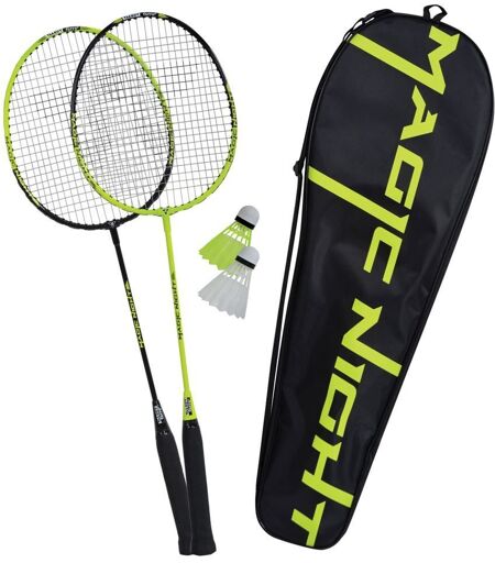 MTS Sportartikel 449405 Ensemble Badminton Magic Night L Le badminton, c'est différent. Un jeu dans l'obscurité est également amusant, avec les boules LED c'est maintenant possible. Ils brillent dans le noir et vous indiquent dans quelle direction la balle tombe. Un jeu passionnant pour les joueurs de badminton plus expérimentés. Le sac vous permet de transporter les raquettes et les balles. Talbot-Torro illumine la nuit avec le nouveau set Magic Night. Nommé pour le "Top 10 des jouets" 2019 2 raquettes robustes avec un cordage dur et multifilament. 2 volants robustes en plastique à LED (1x blanc, 1x jaune) qui ont un interrupteur à l'intérieur pour l'éclairage LED Le volant blanc s'allume en vert, le volant jaune s'allume en rouge. La durée de combustion est d'environ 48 heures pour chaque Le sac de transport en nylon s'adapte non seulement parfaitement à l'optique de la raquette, mais il est particulièrement pratique pour les vacances à la plage, dans le jardin ou dans le parc. À partir de : 3 ans ...