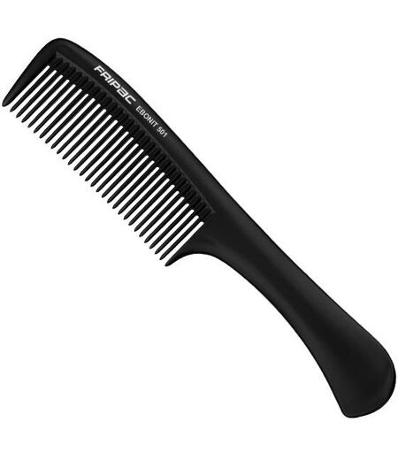 Les peignes en ébonite Fripac sont fabriqués à la main à partir de caoutchouc naturel de haute qualité. Le processus complexe de vulcanisation produit un matériau extrêmement robuste et élastique : l'ébonite, le matériau parfait pour le professionnel exigeant. Elastique et très stable avec des dents parfaitement arrondies et sans bavures. Doux pour les cheveux et le cuir chevelu, résistant à la chaleur et aux produits chimiques. Longueur du peigne 23 cm. ...