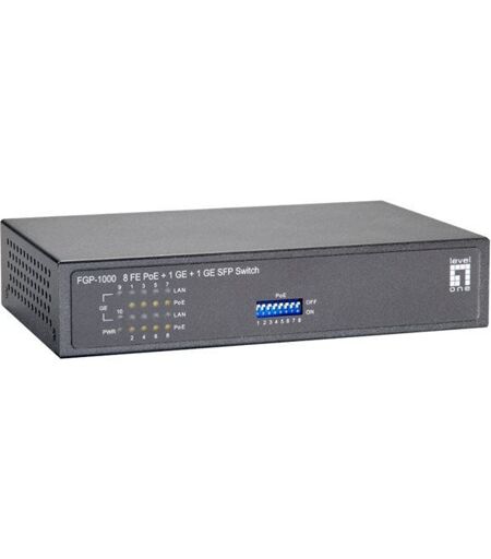 LevelOne FGP-1000W90 - Commutateur - 8 x 10/100 (PoE) + 1 x 10/100/1000 + 1 x 100/1000 SFP - de bureau, fixation murale - PoE (82 W)