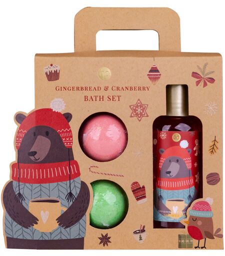Coffret HELLO WINTER (18x16x4 cm), senteur : Gingerbread & Cranberry Contenu : boite carton+gel douche 100ml+2x30g boules effervescentes ...