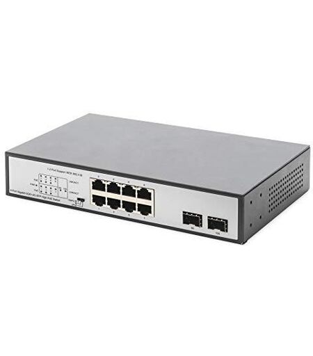DIGITUS Routeur filaire Commutateur Gigabit PoE 8 Ports, 19", Non géré, 2 Liaisons Montantes