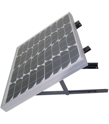 Informations techniques Charge max. : 12 kg Informations techniques Données techniques complémentaires : Charge max. : 12 kg Poids : 1000 g Support pour panneau solaire Support léger et robuste en aluminium pour tous les panneaux solaires courants. L'angle d'inclinaison réglable compris entre 0 et 45° rend possible un rendement d'éclairage optimal, ainsi qu'une fixation aisée au mur ou façade. Des panneaux d'une largeur maximale de 490 mm peuvent être fixés. Points forts Angle d'inclinaison réglable 0 - 45 ° Pour panneaux de largeur 490 mm max Contenu de la livraison Support pour panneau solaire Matériel de fixation Mode d'emploi. Configuration requise null ...