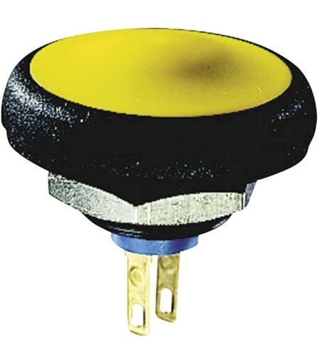 Informations techniques Connexion (composants) : cosses plates 2.8 mm Couleur boîtier/bouton : noir Courant de commutation (max.) : 0.1 A Diam. tête : 25 mm Diamètre de montage : 16 mm Epaisseur de plaque (maxi) : 5 mm Fonctions (interrupteur/bouton) : à rappel Force d'actionnement : 6.5 N Indice de protection : IP67 Matériau du contact : argent, doré Position de commutation : 1 x Off/(On) Tension de commutation : 50 V/DC Type d'éclairage : sans Type de contact (LOV) : 1 NO (T) Contenu de la livraison Joint plat Écrou hexagonal. Informations supplémentaires Dans la description du fonctionnement des interrupteurs, les valeurs entre parenthèses indiquent qu'il s'agit d'une fonction momentanée. Illustration similar. ...