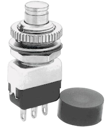 Informations techniques Connexion (composants) : cosses plates 2.5 mm Couleur boîtier/bouton : métal Courant de commutation (max.) : 2 A Diamètre de montage : 10 mm Epaisseur de plaque (maxi) : 3.5 mm Fonctions (interrupteur/bouton) : à rappel Matériau du contact : argent Position de commutation : 1 x On/(Off) Température (max.) : +85 °C Température (min.) : -40 °C Tension de commutation : 220 V/AC Type d'éclairage : sans Type de contact (LOV) : 1 NF (R) Informations supplémentaires Les capuchons de protection de ces boutons-poussoirs doivent être commandés séparément. Illustration similar. ...