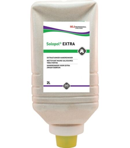 nettoyant pour les mains pour les salissures huileuses extrêmement fortes formule sans solvants avec un excellent pouvoir nettoyant pour éliminer les salissures extrêmement fortes l'agent de friction naturel Astopon® permet d'éliminer les salissures en douceur, sans endommager la peau contient de l'Eucornol®, un agent protecteur de la peau, pour minimiser le risque d'irritation de la peau degré de nettoyage 5 Application : pour l'élimination de salissures extrêmement fortes dans les domaines industriels Autres caractéristiques techniques : Domaine de nettoyage : salissures extrêmement fortes convient pour : 4707 022 006, 4707 020 034Caractéristiques Conditionnement : bouteille Contenu : 2 l Marque : STOKO Version : avec aloe vera, sans solvants(STOKO Nettoyant mains Solopol EXTRA 2l avec aloe vera, sans solvants - 35577 est un produit de la gamme de la société SC Johnson PROFESSIONAL dans la catégorie Nordwest Katalog > Arbeitsschutz und Berufsbekleidung > Hautschutz, ...