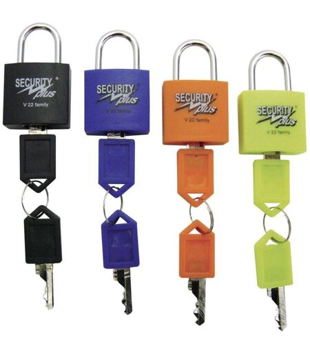 Informations techniques Couleur : jaune fluorescent, bleu, orange, noir Dimensions produit, hauteur : 40 mm Dimensions produit, largeur : 24 mm Longueur : 13 mm Poids : 29 g Type de fermeture : fermeture à clé Set de mini-cadenas Security Plus Ce set de mini-cadenas propose 4 cadenas compacts et robustes et vous offre de nombreuses possibilités d'utilisation. Vous pourrez, par exemple, utiliser ces cadenas pour sécuriser le panier de votre vélo, votre casque, votre sac à dos, valise, porte-document. Du fait que chaque clé s'adapte à chaque serrure, ce set est idéal pour une utilisation dans le cadre familial et là où plusieurs personnes doivent pouvoir ouvrir la même serrure. Points forts 4 cadenas avec 2 clés Chaque clé peut ouvrir toutes les serrures Contenu de la livraison 4 cadenas. Configuration requise null ...
