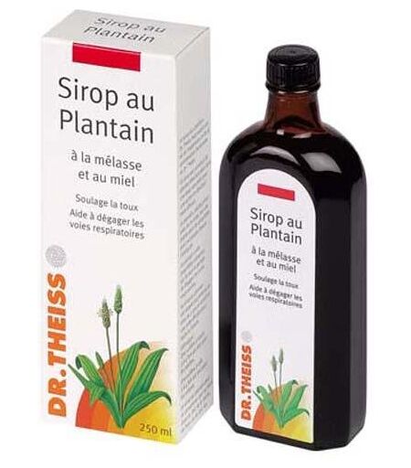 Nom du produit, titre : Dr. Theiss - Sirop au plantain (250 ml) Code barre (EAN) :4016369521113 Poids du produits (g) :750,00 Nom de la marque : Dr. Theiss - Un complément alimentaire ne doit pas se substituer a une... ...