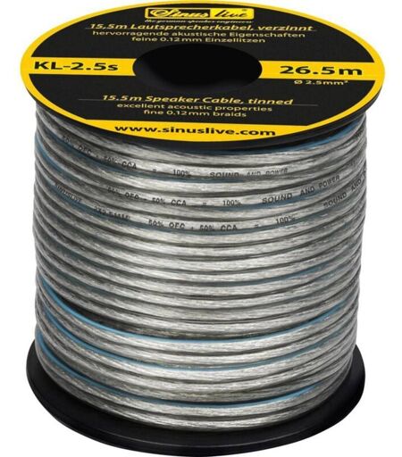 Sinuslive - KL-2,5S Câble haut-parleur 1 x 2.5 mm² argent 15.5 m Y49051