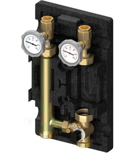 Groupe de pompes Meibes Edition 8 MK pour circuits de chauffage mixtes DN 25 · PN 6 Composants en acier · Laiton · PTFE · joint en fibre sans amiante et EPDM composé de : 1 vanne à boule à 2 voies avec thermomètre indicateur intégré rouge 1 vanne à boule à 2 voies avec thermomètre indicateur intégré bleu et frein de gravité avec dispositif d'ouverture 1 mélangeur en T à 3 voies 1 stabilisateur entre l'aller et le retour 1 tuyau de retour · composants ci-dessus montés et étanchéisés en usine 1 isolation prête à poser en EPP avec support mural sans pompe · pour 1 pompe (EL 180 mm) côté d'aller à droite Connexions : filetage intérieur G 1(unknown) en haut · filetage extérieur de 1 1/2(unknown) plat en bas Valeur kvs : 6,2 Indicateur de température : 0 à 120 degrés Température d'utilisation : jusqu'à 110 degrés Distance entre axes : 125 mm Hauteur : 420 mm Largeur : 250 mm Profondeur : 255 mm ...