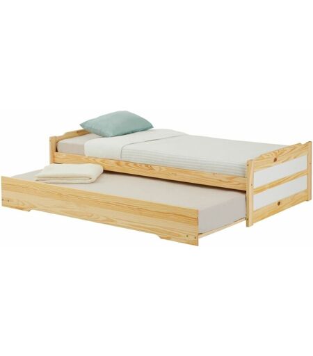 Idimex Lit gigogne lorena en pin massif, 90 x 190 cm, vernis naturel et blanc