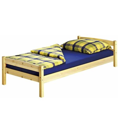 Le lit en pin 90 x 190 cm Felix... fabriqué en pin massif, est simplement verni afin de conserver l' aspect naturel du bois. Ce lit simple en bois sera parfait pour une chambre d' enfant et son aspect naturel contribuera à l' atmosphè re chaleureuse de votre inté rieur. DESCRIPTION DES MATÉ RIAUX : La structure du lit est en pin massif, recouvert d' un vernis naturel La madrure du bois reste visible CARACTÉ RISTIQUES DU PRODUIT : Lit simple enfant Dimensions du lit monté (L x H x P) : 97 x 58 x 197 cm Dimension du couchage: 90 x 190 cm Hauteur en dessous du lit: 21.5 cm Bords et coins arrondis LIVRAISON ET MONTAGE : Contenu de la livraison: lit, sans dé coration, notice de montage Le produit est livré en piè ces dé taché es Assemblage facile grâ ce à la notice Sans sommier et sans matelas Photo non contractuelle ...
