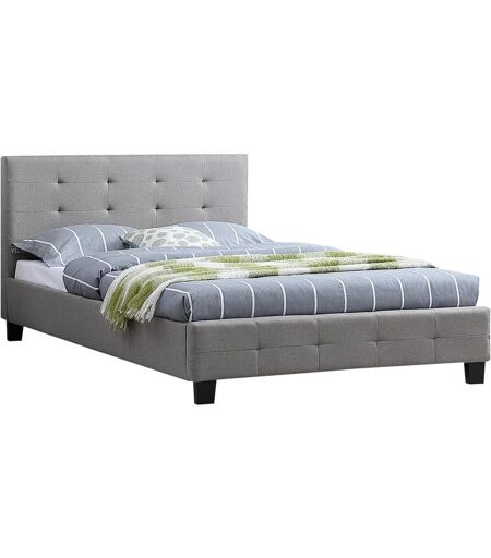 Idimex - Lit simple marlon, 120 x 190 cm, capitonné avec sommier, revêtement en tissu gris