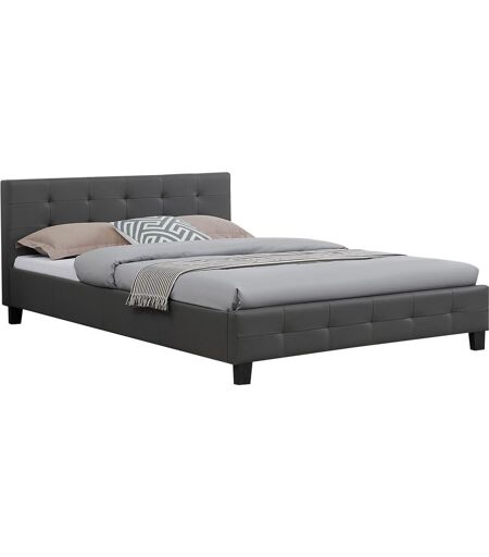Idimex - Lit double mathieu, 140 x 190 cm, capitonné avec sommier, revêtement synthétique gris