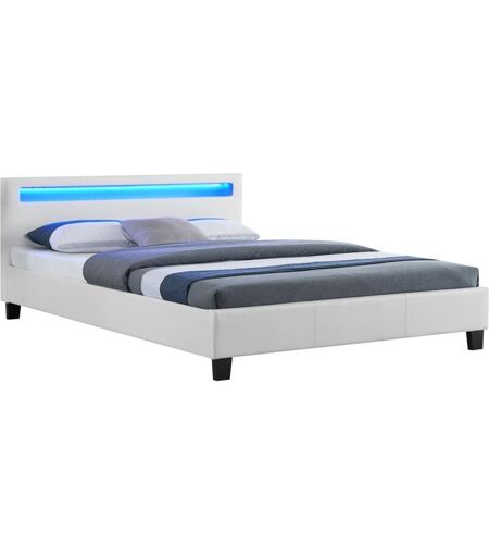 Idimex - Lit led double rioja 140x190 cm, avec sommier, revêtement tissu blanc