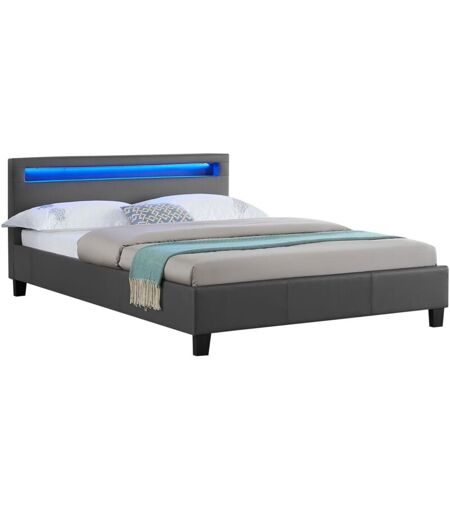 Idimex - Lit led double rioja 140x190 cm, avec sommier, revêtement tissu gris