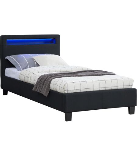 Idimex - Lit led simple molina 90x190 cm, avec sommier, revêtement tissu noir
