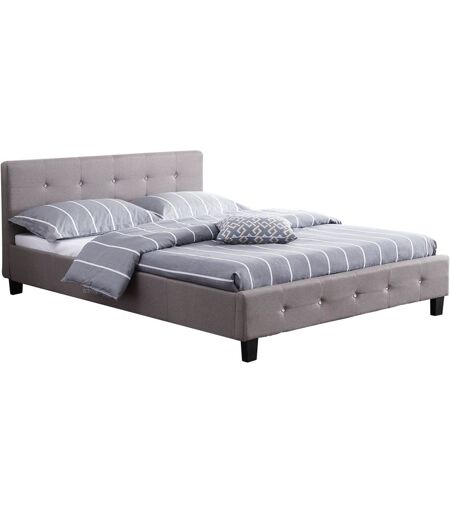Idimex - Lit double josy, 140 x 190 cm, capitonné avec sommier, en tissu gris