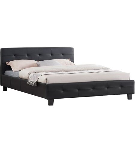Idimex - Lit double mathieu, 140 x 190 cm, capitonné avec sommier, revêtement synthétique noir
