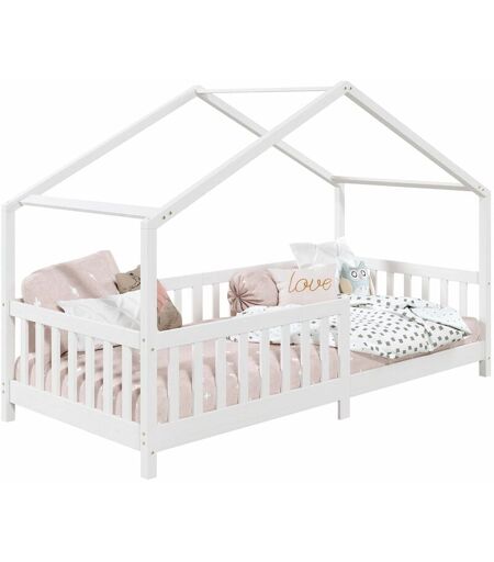Idimex - Lit cabane lisan 90 x 190 cm, en pin massif lasuré blanc