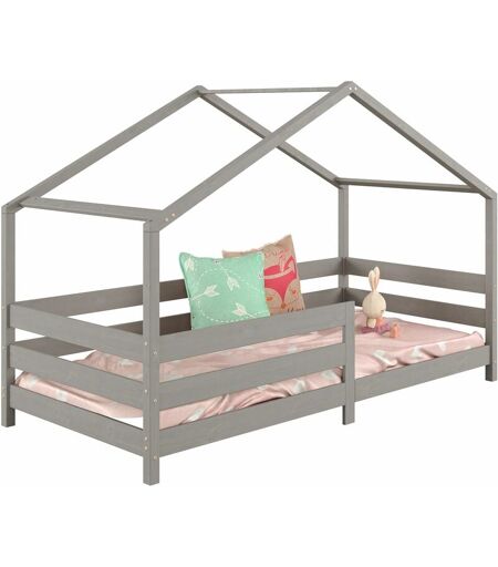 Idimex - Lit cabane rena 90 x 190 cm, en pin massif lasuré gris