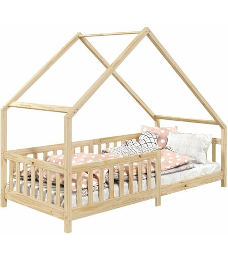 Idimex - Lit cabane asymétrique cora 90 x 190 cm en pin massif naturel