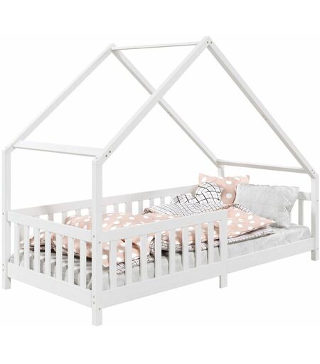 Idimex - Lit cabane asymétrique cora 90 x 190 cm en pin massif lasuré blanc