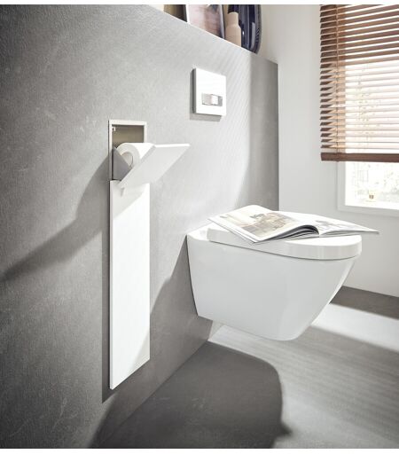 WC encastré Emco Asis Pure garniture de toilette Numéro d'article 975551303 Couleur : blanc mat Dimensions : 17 x 60 cm Matériau de la façade : Panneau de fibres à densité moyenne (MDF) avec compartiment pour papier toilette et ensemble brosse WC intégré aucun cadre d'installation requis Installation : encastrée y compris le matériel de fixation ...