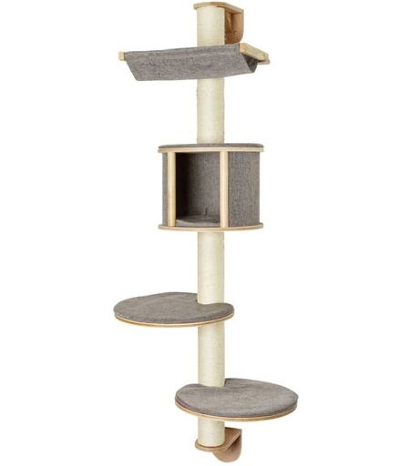 ? à fixer au mur ? coussin en toile avec bande velcro, amovible ? hauteur : 168 cm ? alcôve : diam. 40 x 30 cm ? hamac : 40 x 30 cm ? surface de couchage : diam. 45 cm ? tronc : diam. 10 cm ? sisal collé sur les tiges ? vis incluses ...