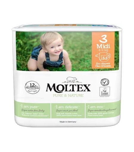 Ontex ID Moltex Pure & Nature Couches Taille 3 Midi 4-9kg 33uts
