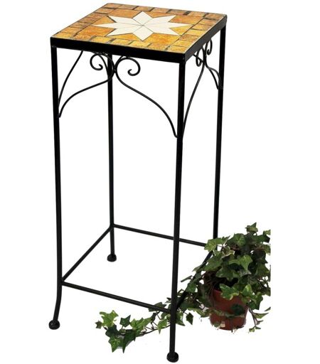 Stable et décoratif, ce tabouret à fleurs est doté d'une étagère en mosaïque de pierre pour vos plantes, pots de fleurs ou vases. Vous pouvez également utiliser ce tabouret comme table d'appoint dans le salon, la cuisine ou l'entrée. La structure est en métal forgé et richement décorée. Couleur de la structure: noir, étagère en mosaïque dans différentes couleurs de terre cuite. Dimensions: hauteur 62 cm, largeur et profondeur 24 x 24 cm. ...