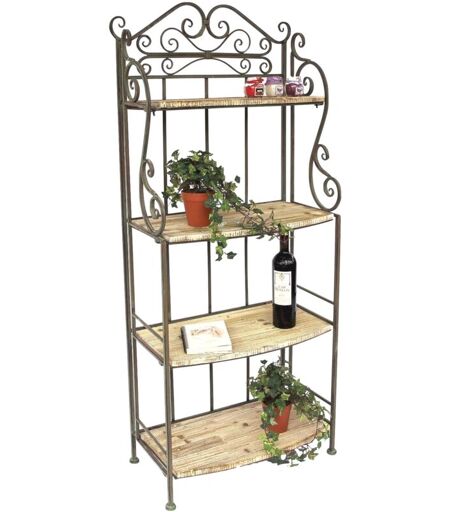 Etagère "Malega" style chalet avec 4 étagères en bois. En métal forgé. Entièrement apprêtée avec une peinture antirouille et vernie avec des peintures de qualité. Couleur - patine antique. Dimensions: hauteur environ 150 cm, largeur environ 60 cm, profondeur environ 33 cm. ...