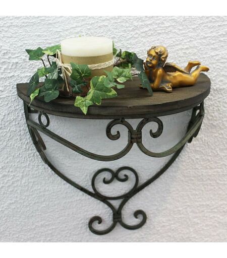 Etagère murale Console murale Malega. En métal forgé - Très décoratif. Entièrement apprêtée avec une peinture antirouille et peinte avec des peintures laquées de haute qualité. Couleur - Patine antique Dimensions: hauteur environ 29 cm, largeur environ 31 cm, profondeur environ 17 cm. ...